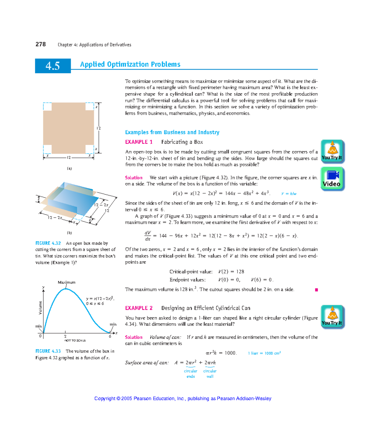 Applications Of The Derivative Ii 278 Chapter 4 Applications Of Derivatives Applied Optimization Studocu