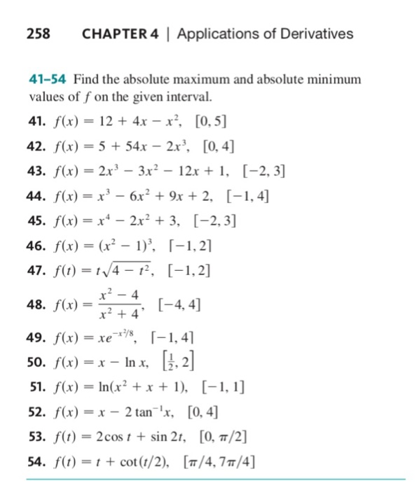 Solved 258 Chapter 4 Applications Of Derivatives 41 54 Find Chegg Com
