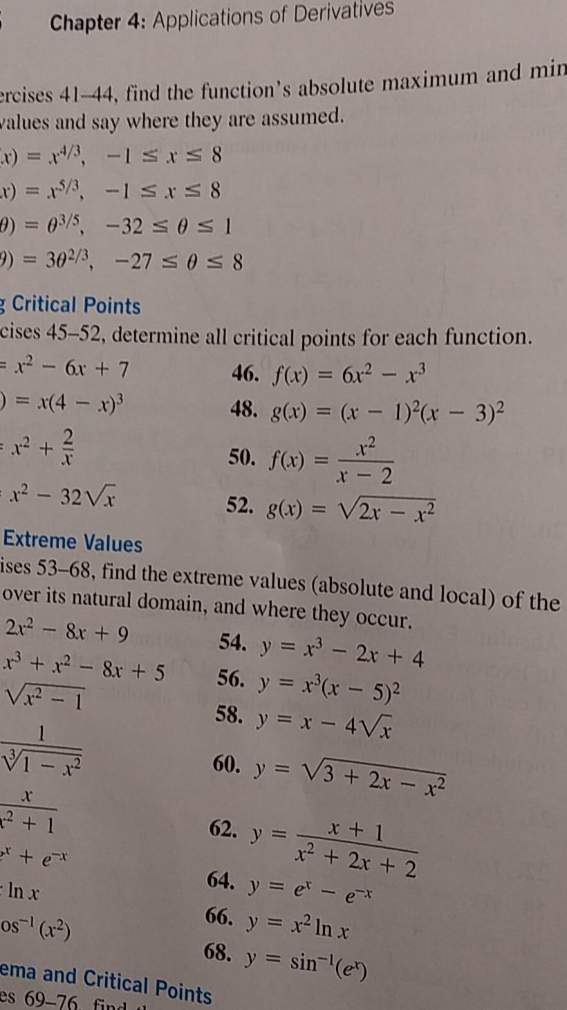 Chapter 4 - Applications of Derivatives All documents are organized by day and are in pdf format. In Exercises 21 36 find the absolute maximum and minimum values. Use calculus to solve the following problem.