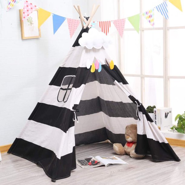 Kids Teepee Tent Kids Foldable Play Tent For Indoor Outdoor Black Wide Stripe Canvas Teepee Kids Playhouse Portable Kids Tent Walmart Com